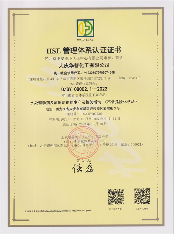 榮譽資質(zhì) HSE管理體系認證證書