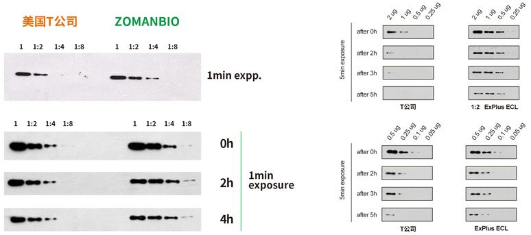 5. 可使用更高的二抗稀釋倍數(shù)(1:20000~1:100000),極其節(jié)省抗體。