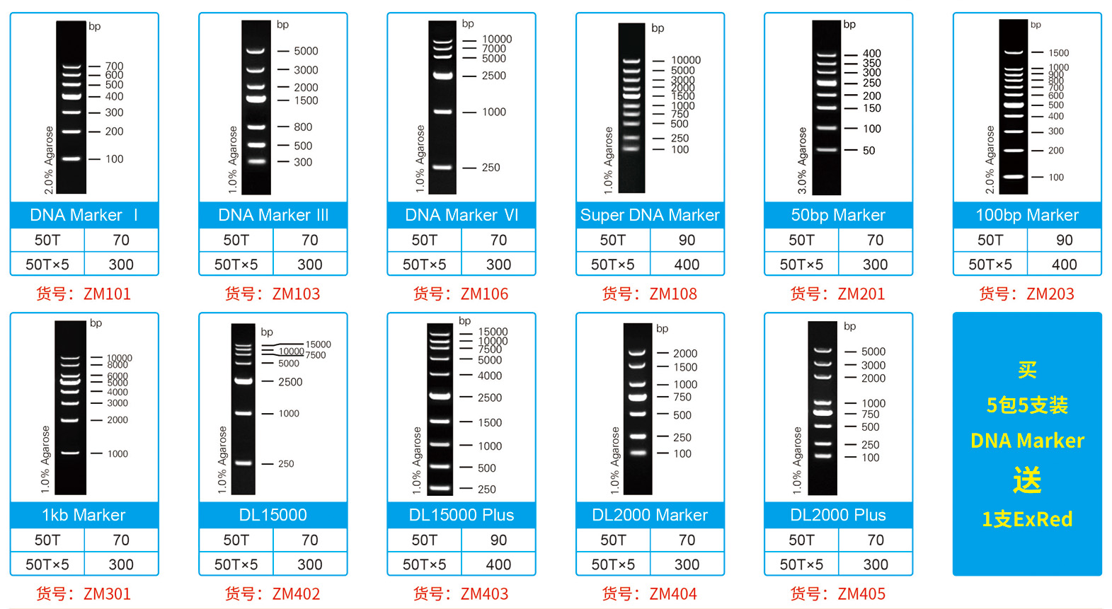 買(mǎi)5包5支裝DNA Marker 送1支ExRed