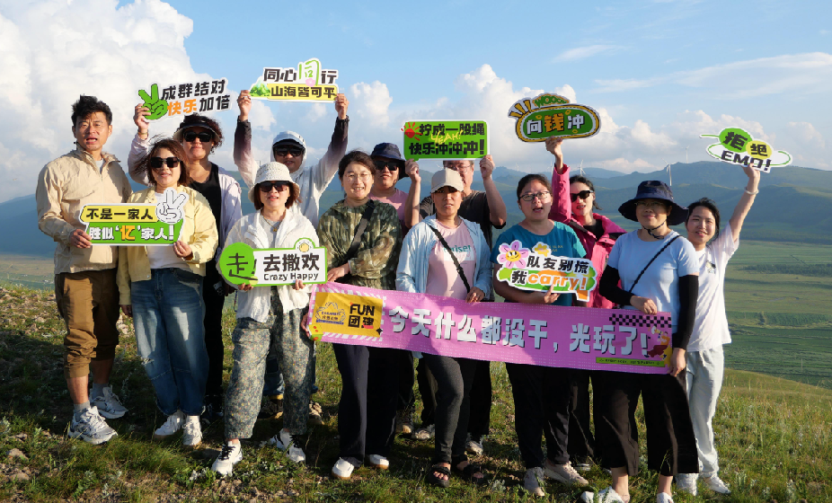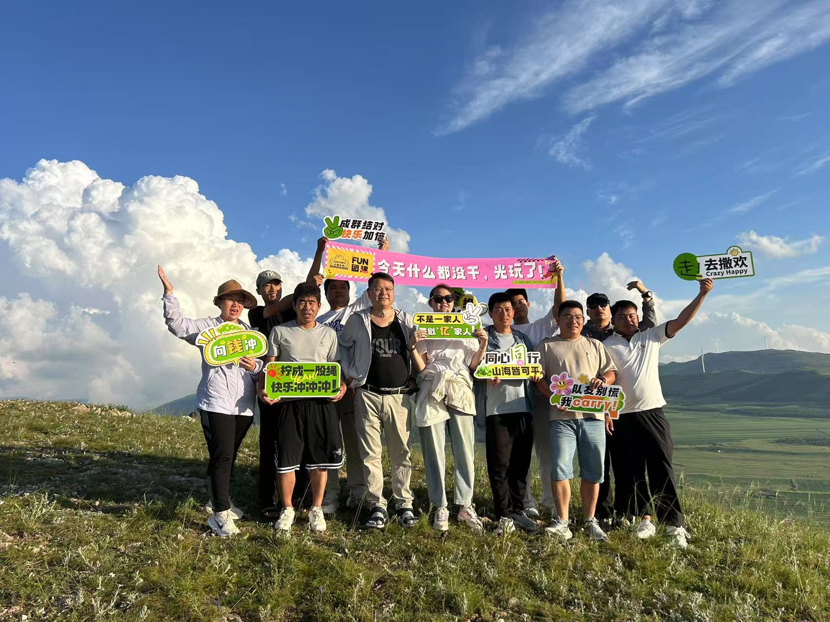 拍下了本次團建最有意義的公司集體照——在藍天下、草原上、笑容里,我們定格這一刻。