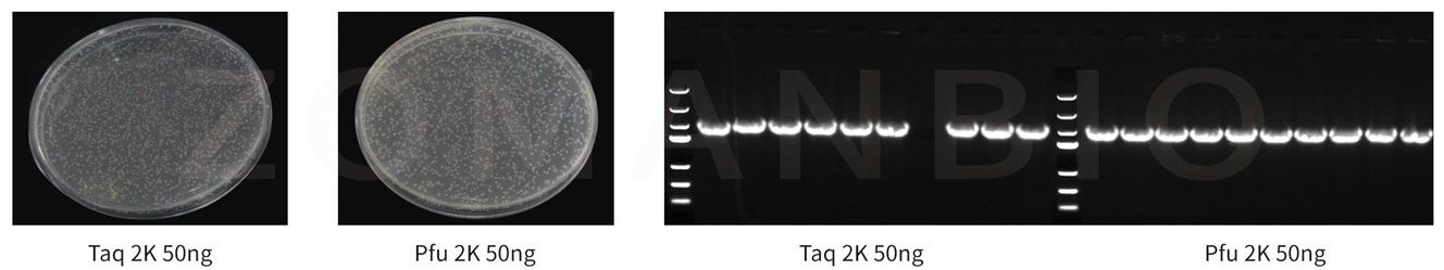 陽(yáng)性率高:2K以下片段陽(yáng)性率>90%,可連接低至5ng/μl片段;成功連接長(zhǎng)達(dá)12Kb片段。