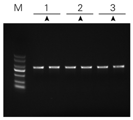 ![]() | 注解:三個月穩(wěn)定性實驗結果圖 柑橘內參基因GAPDH 1kb擴增結果 RNA使用量為50 ng 1:4℃保存 2:37℃保存 3:-20℃保存 M:莊盟DL2000(3μl點樣) |