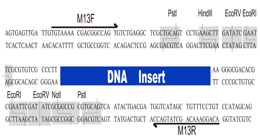 注1:“M13通用引物”有多種不同的序列,且個(gè)別引物合成公司默認(rèn)的M13引物與此載體所用的M13序列有差異,合成使用前務(wù)必先核對(duì)序列。