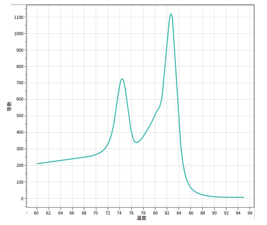以水稻miRNA為模板,使用本產(chǎn)品與某T公司和某V公司同類產(chǎn)品進(jìn)行反轉(zhuǎn)錄,得到的cDNA進(jìn)行熒光定量檢測osa-miR156a。可以看到,使用本產(chǎn)品得到的融解曲線為單峰,同類產(chǎn)品得到的融解曲線為雙峰。