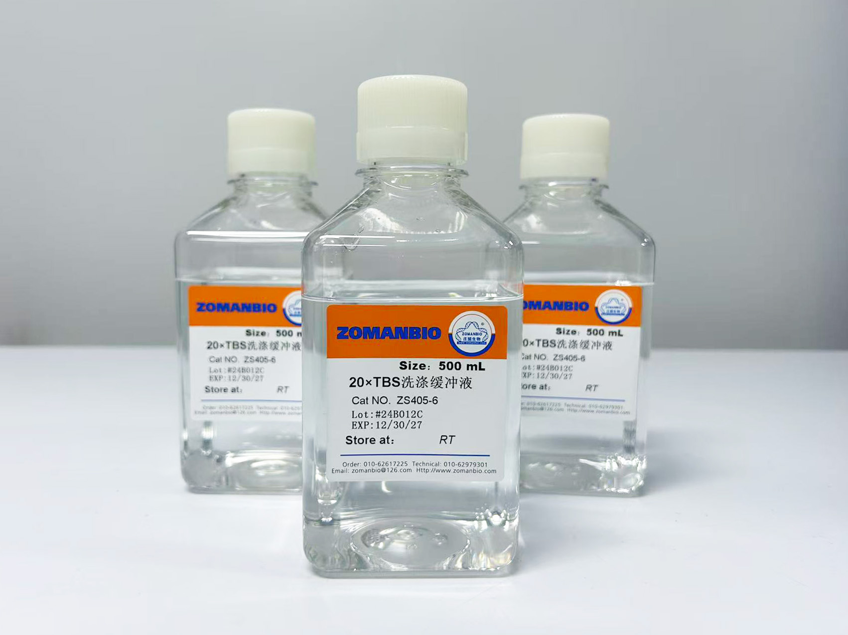 TBS緩沖液是生物學中常使用的等滲Tris 緩沖鹽溶液,pH=7.6±0.1,主要用于免疫組化和原位雜交,酶聯(lián)免疫等實驗中,清洗免疫印跡實驗中非特異性結(jié)合的抗體等。TBS由Tris-HCl構(gòu)成穩(wěn)定的pH緩沖體系,由NaCl提供等滲條件。