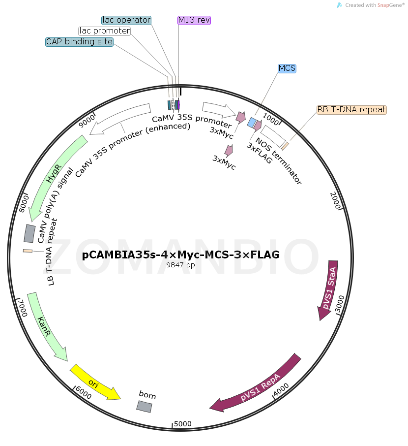 pCAMBIA35S-4×Myc-MCS-3×FLAG質(zhì)粒是一個(gè)植物系列質(zhì)粒。