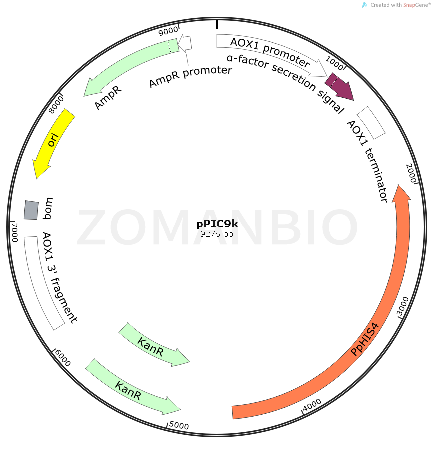 pPIC9K載體中存在卡那抗性基因,允許利用卡那抗性在酵母體內(nèi)篩選多克隆拷貝。