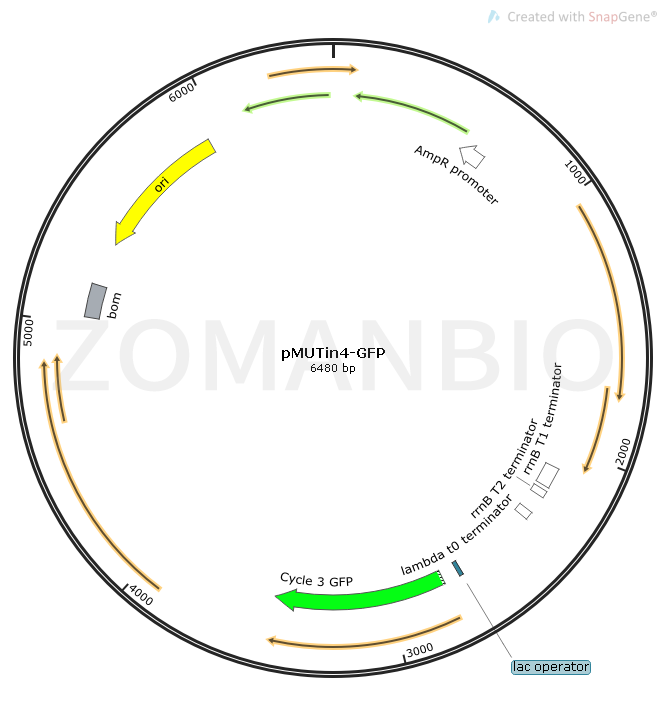 質粒序列可參考(具體以測序為準)下載:ZK1026pMUTIN4-GFP枯草胞內質粒.txt