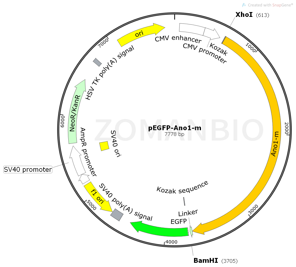 pEGFP-ANO1-m是一個小鼠ANO1基因的哺乳細胞過表達質(zhì)粒。