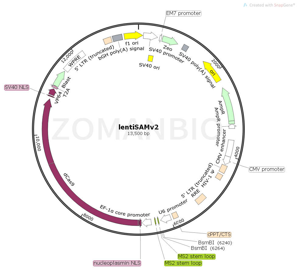 lentiSAMv2是一個(gè)哺乳CAS9和gRNA表達(dá)質(zhì)粒。