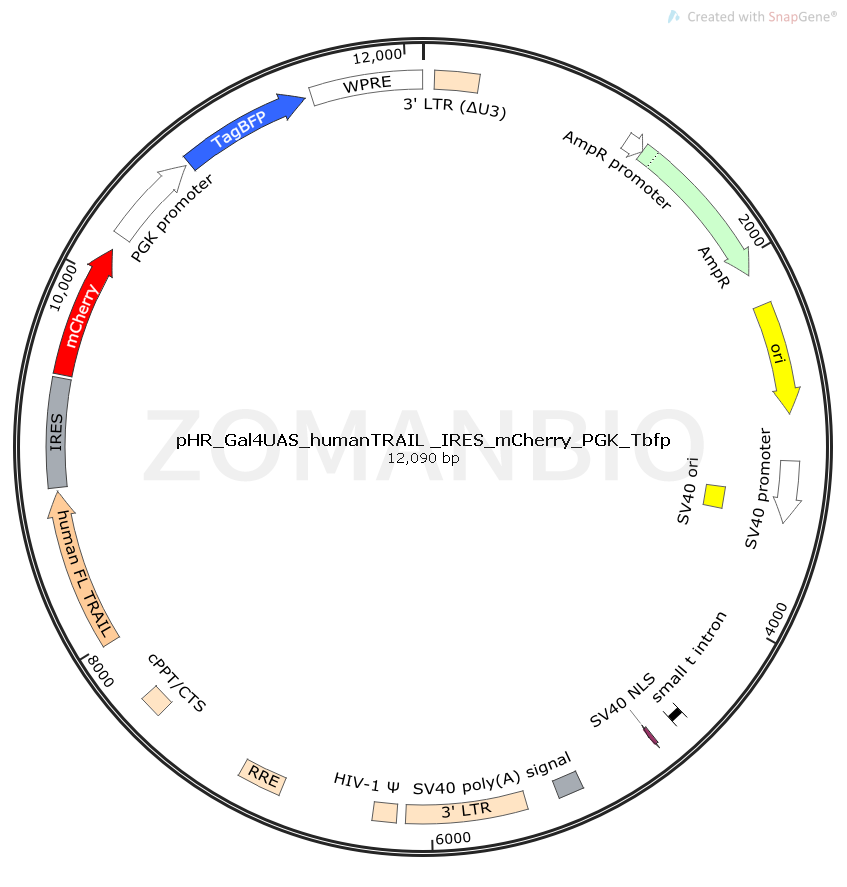 pHR_Gal4UAS_humanTRAIL _IRES_mCherry_PGK_Tbfp是一個(gè)哺乳細(xì)胞抗體質(zhì)粒。