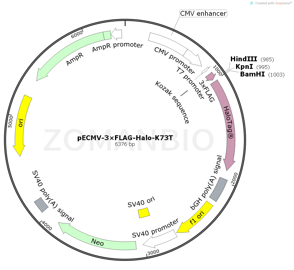 pECMV-3×FLAG-Halo-K73T質(zhì)粒