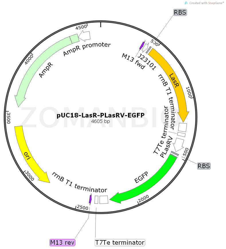 產(chǎn)品名稱:pUC18-LasR-pLasRV-EGFP