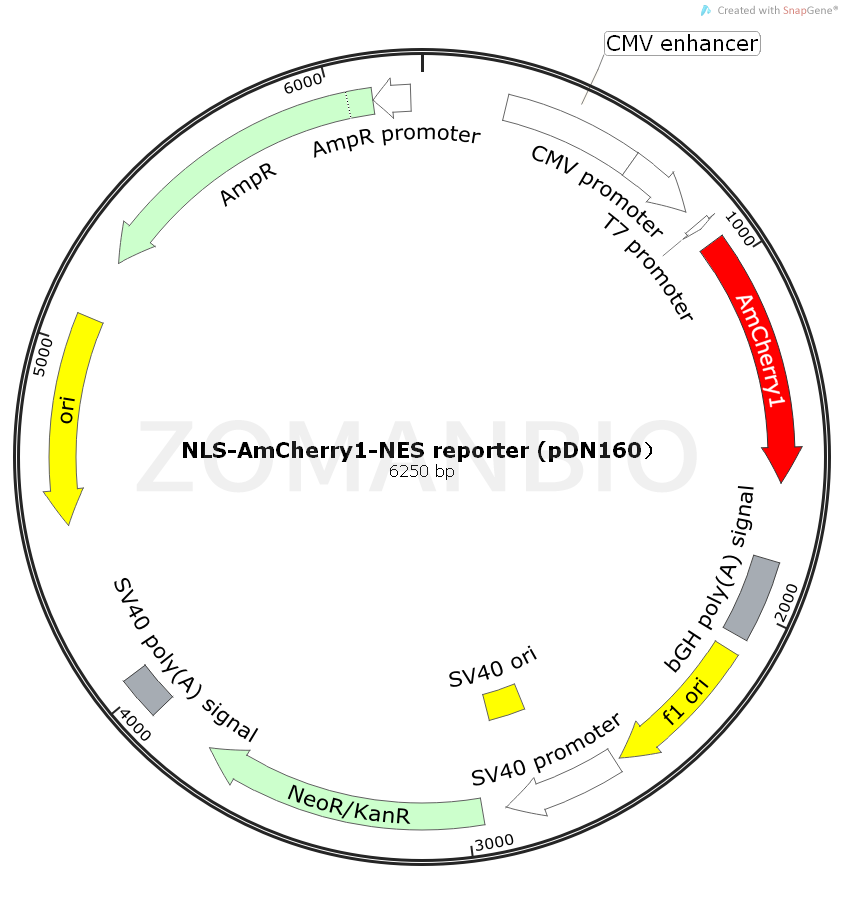 NLS-AmCherry1-NES reporter (pDN160)哺乳熒光質(zhì)粒。